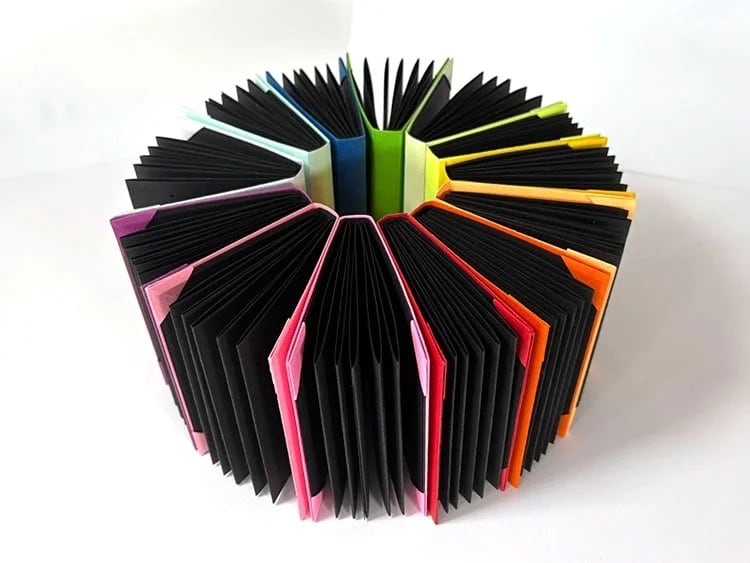 推しのイメージでスリーブ・インナーカバーを差し替えられるチェキ帳で背表紙からも推し色が見える仕様です。