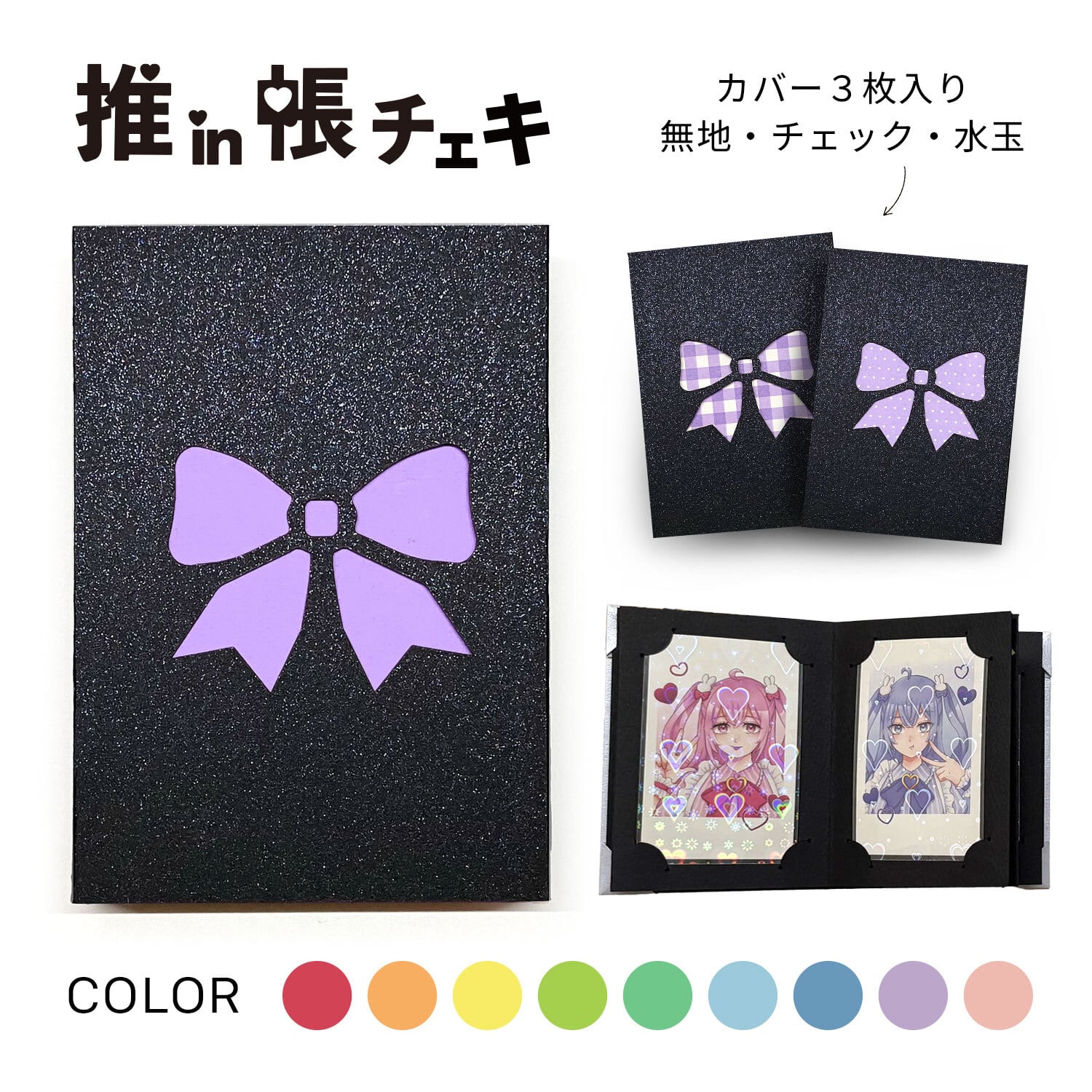 推in帳 チェキセット ブラックリボン(9色)